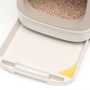 寝床以外の場所を、新しいトイレ砂(または、チップなど、砂に準ずる素材)で覆った囲いに入れておきます。すると、砂の上で排泄せざるを得なくなるので、砂=排泄というつながりが形成されやすくなります。それから、徐々に砂で覆ったスペースを狭くしていきます。砂で覆わなくなったところに、ごはんを置くのもいいでしょう。最終的には、側面の低いトレーに砂を入れ、後で適切な容器に変えます。