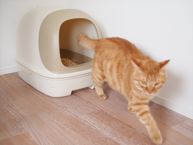 「尿検査のための採尿をシステムトイレで行う場合、清潔にしたトレーや新しい砂(チップ)で行ってください。砂(チップ)は、通過しても尿の成分が変わらないものを選ぶとより良いです。」